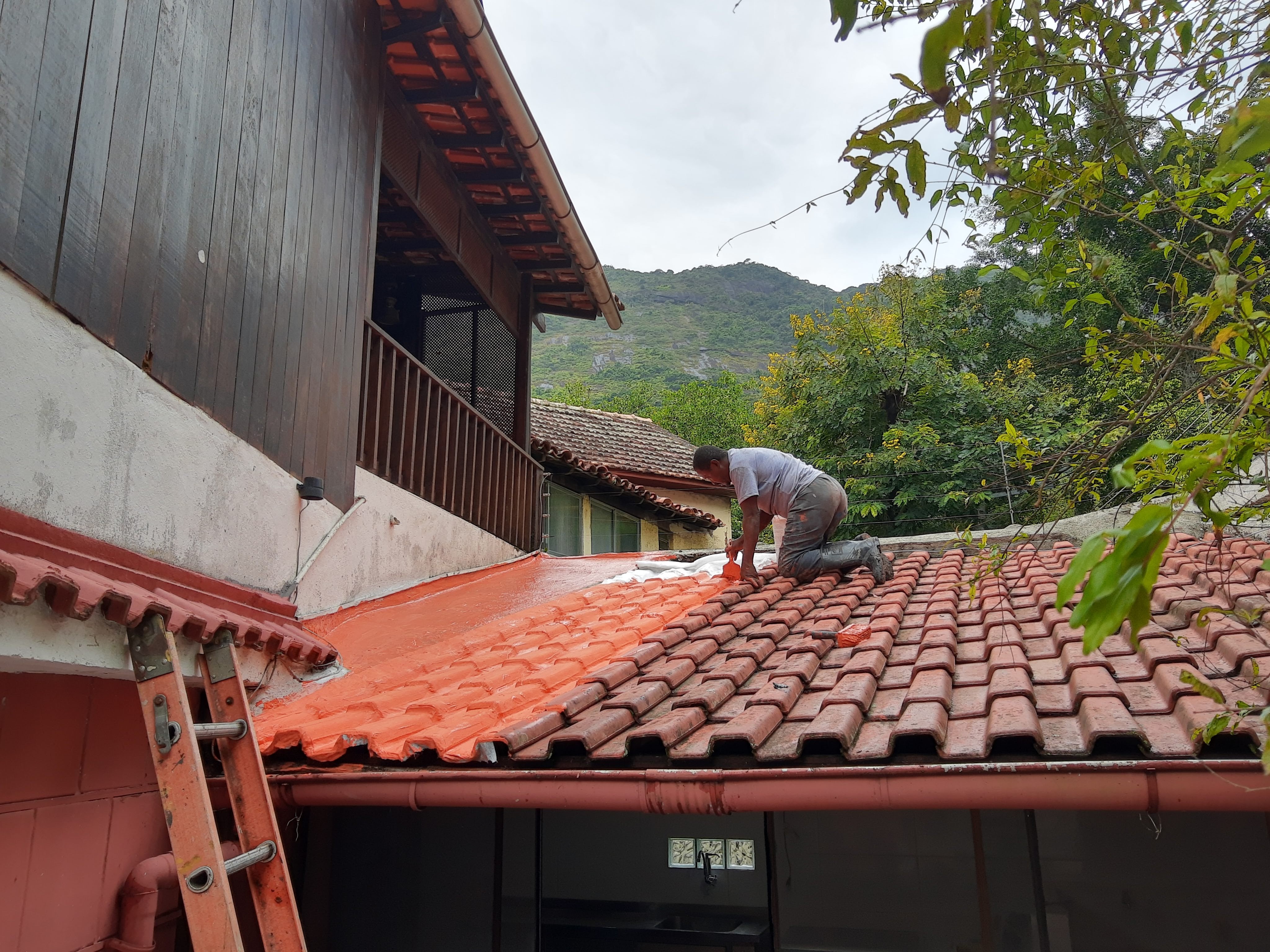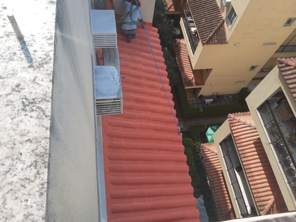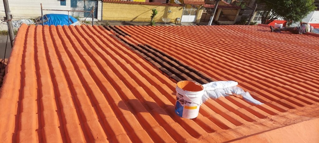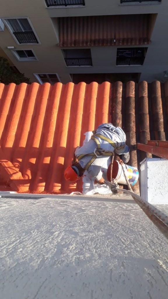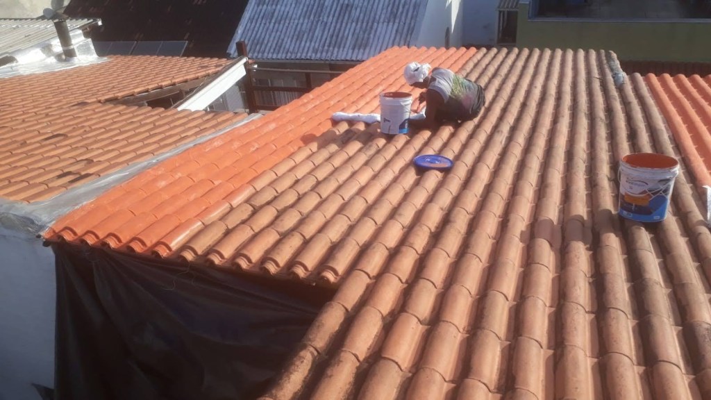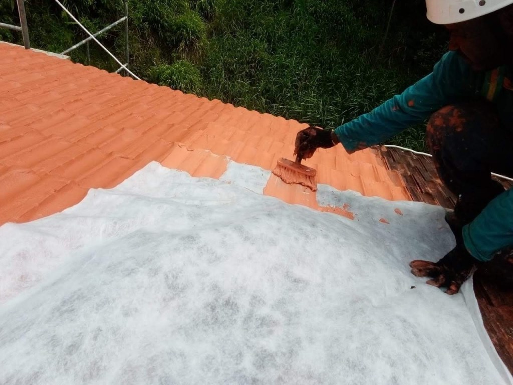 LIMPEZA E IMPERMEABILIZAÇÃO COM BORRACHA LIQUIDA ESTRUTURADA EM TELHADO COM TELHAS CANALETE 49