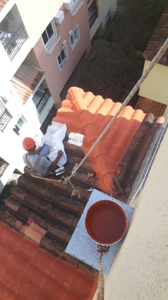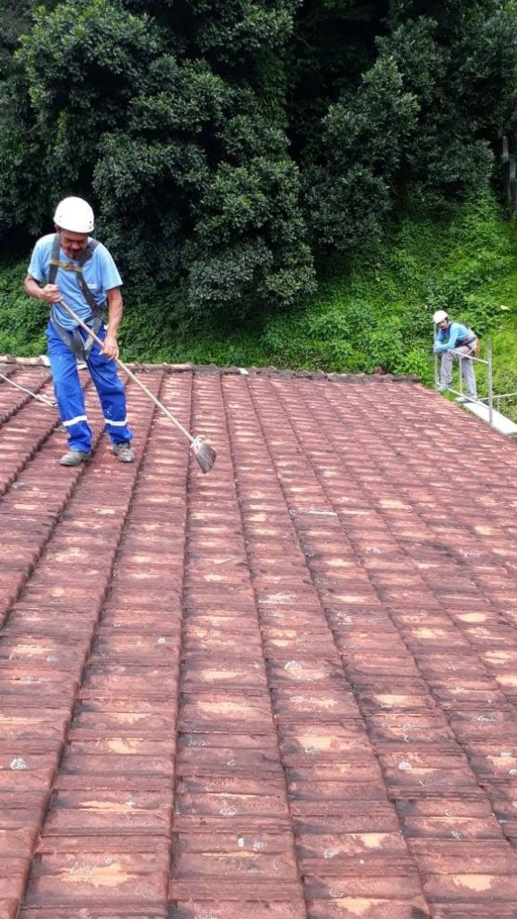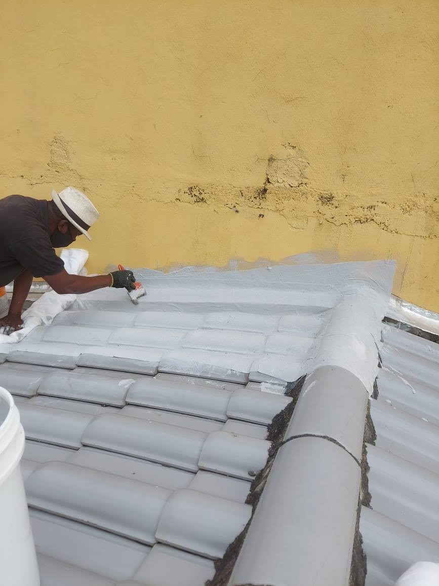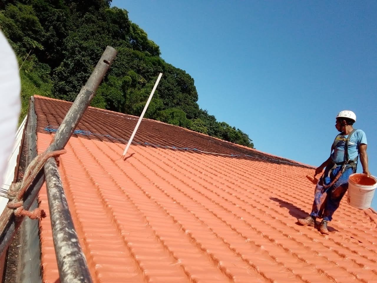 LIMPEZA E IMPERMEABILIZAÇÃO COM BORRACHA LIQUIDA ESTRUTURADA EM TELHADO COM TELHAS CANALETE 49
