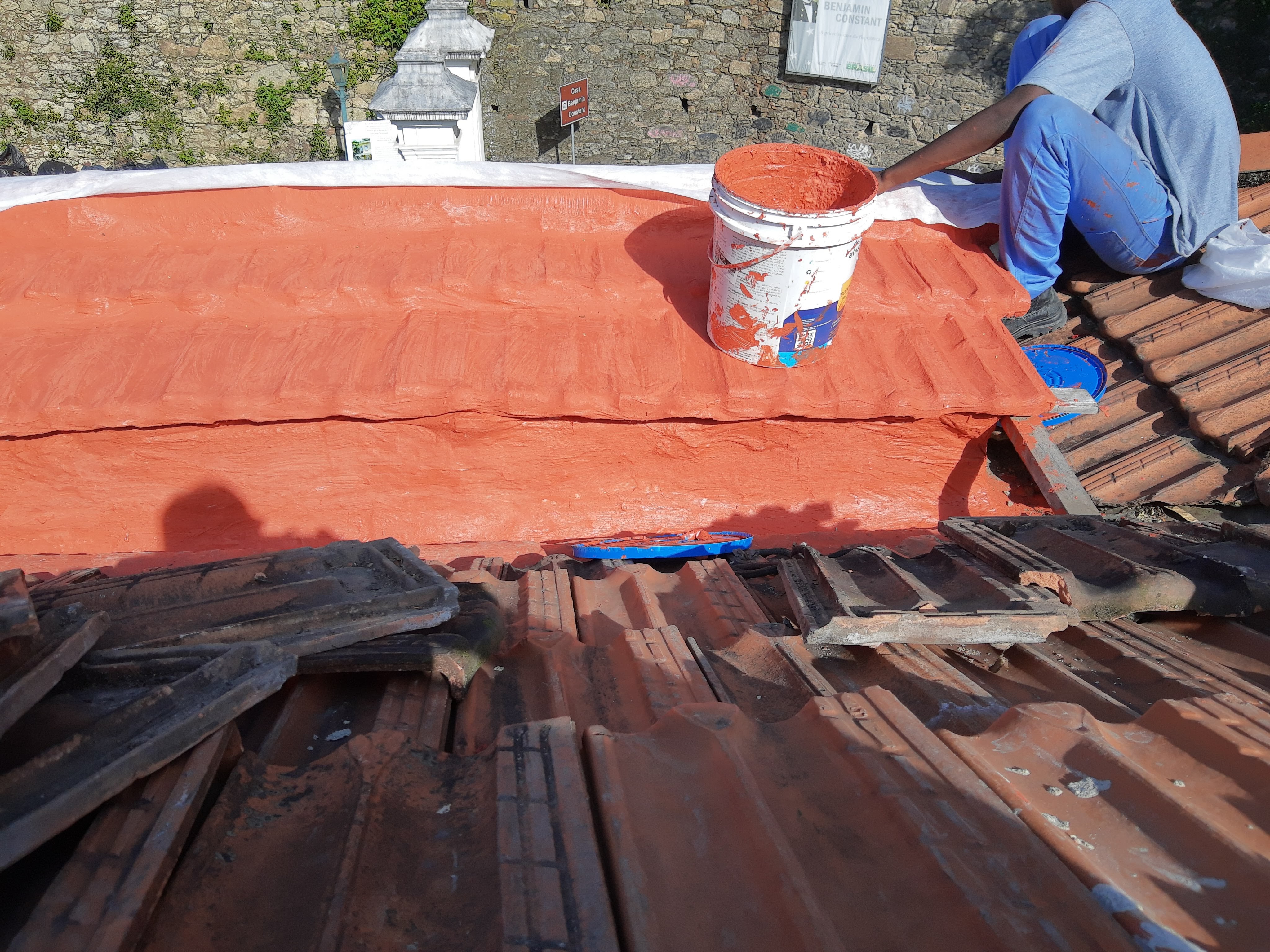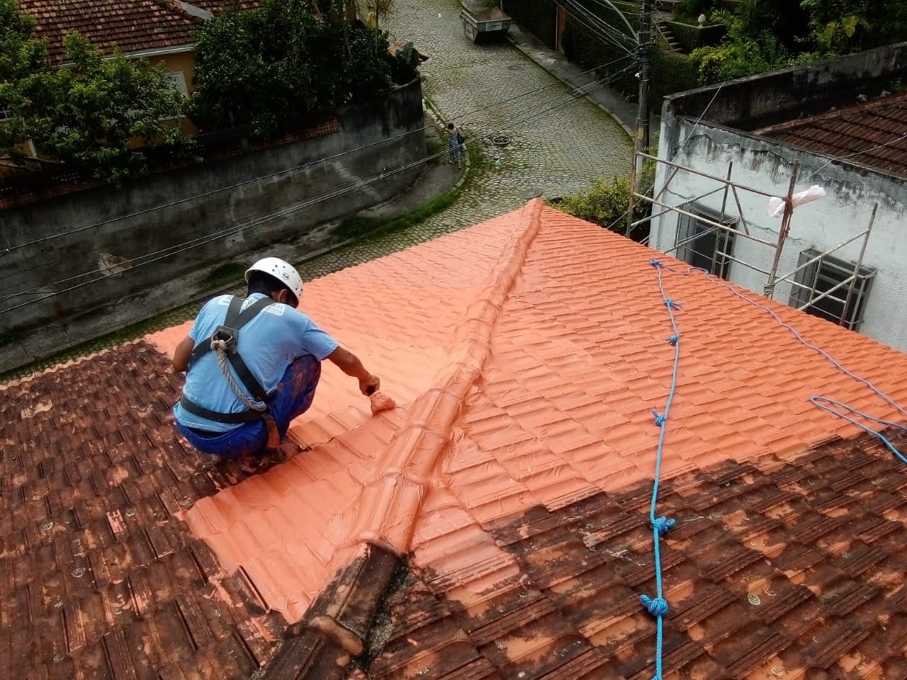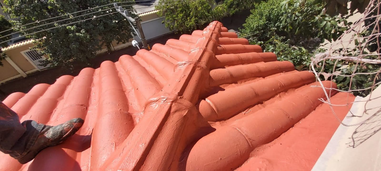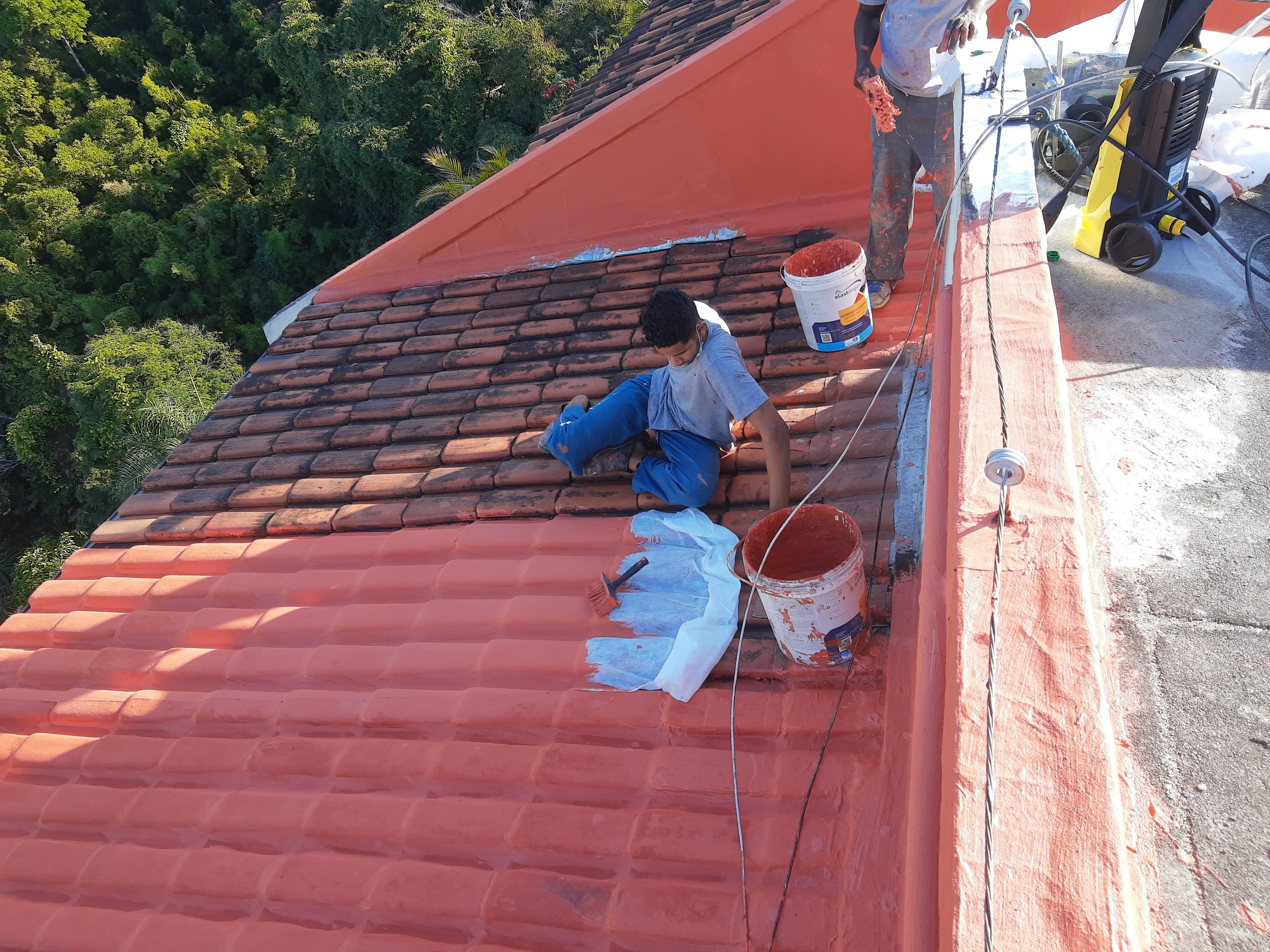 LIMPEZA E IMPERMEABILIZAÇÃO COM BORRACHA LIQUIDA ESTRUTURADA EM TELHADO COM TELHAS CANALETE 49
